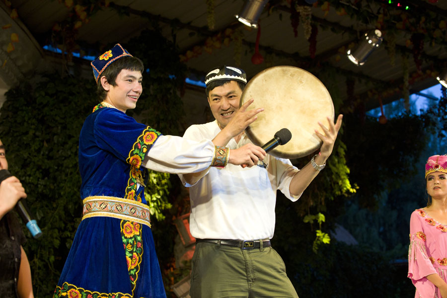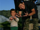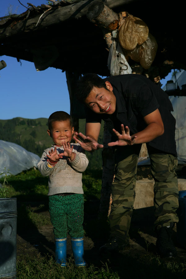 与哈萨克族小朋友合影