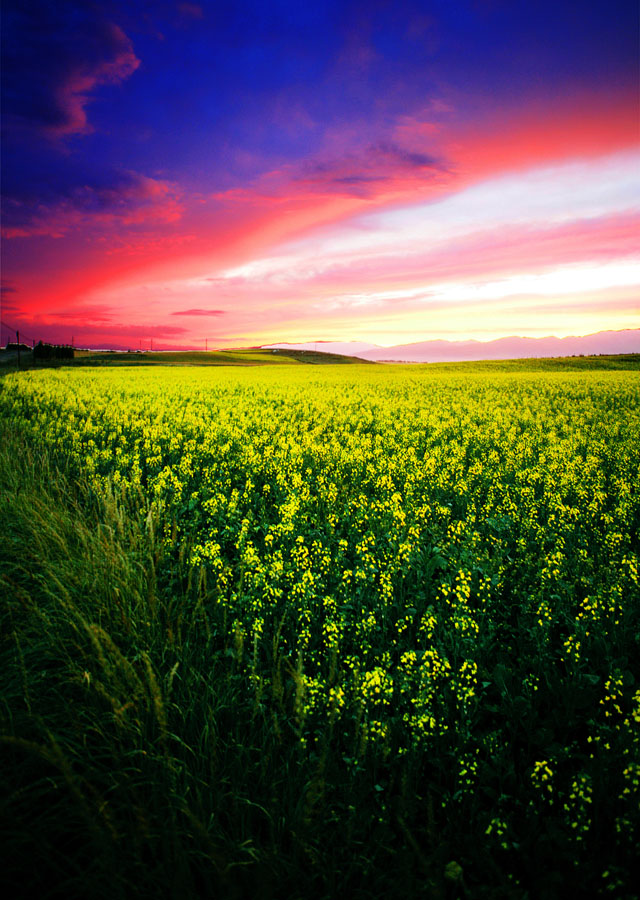 沐浴晚霞的昭苏油菜花